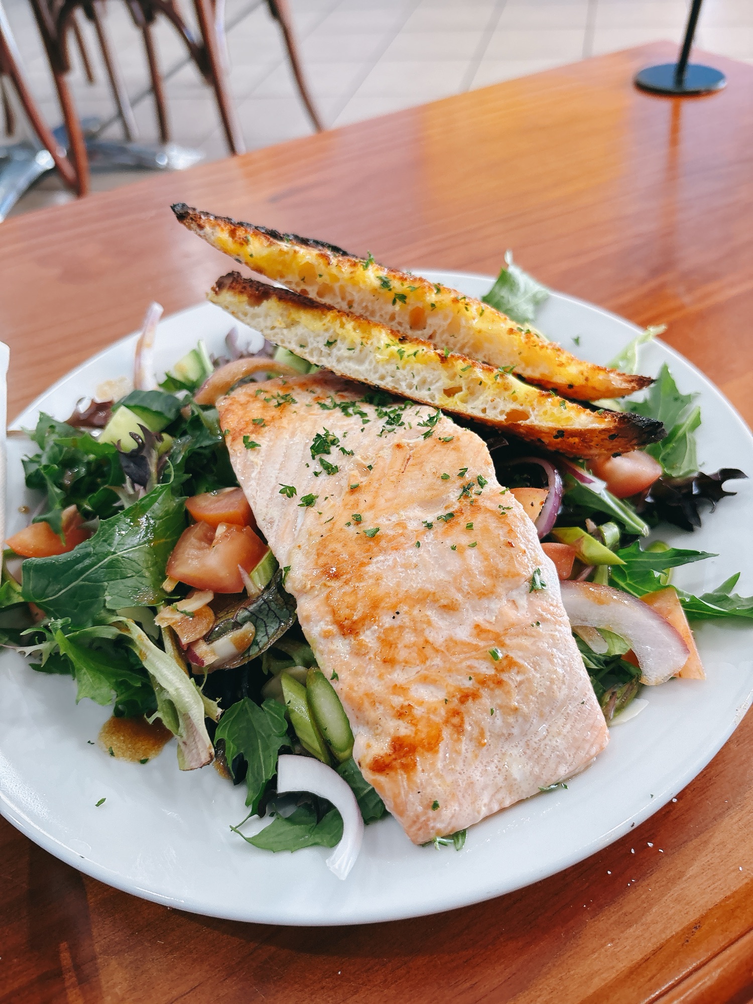 注文したのは、Lunchメニューの中からAtlantic salmon salad A$36